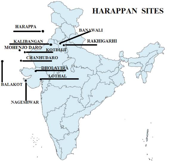 उत्तर: (i) कृषि स्थल: हड़प्पा, बनावली, कालीबंगन, मोहनजोदड़ो, धोलावीरा (गुजरात)।