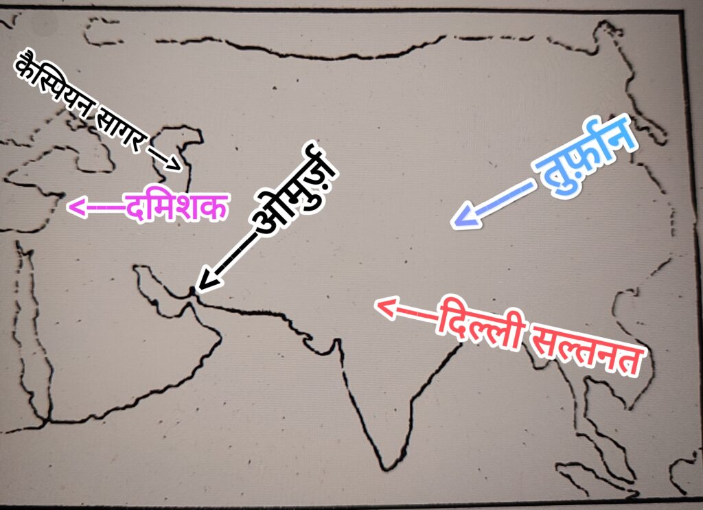 प्रश्न 34. मंगोल साम्राज्य के दिए गए रेखा मानचित्र पर निम्नलिखित स्थानों को चिन्हित करें और उचित चिह्नों से चिह्नित करें।