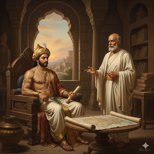 - उनके बचपन पर चाणक्य (कौटिल्य) का गहरा प्रभाव रहा, जो उनके पिता के प्रधान मंत्री और गुरु थे।