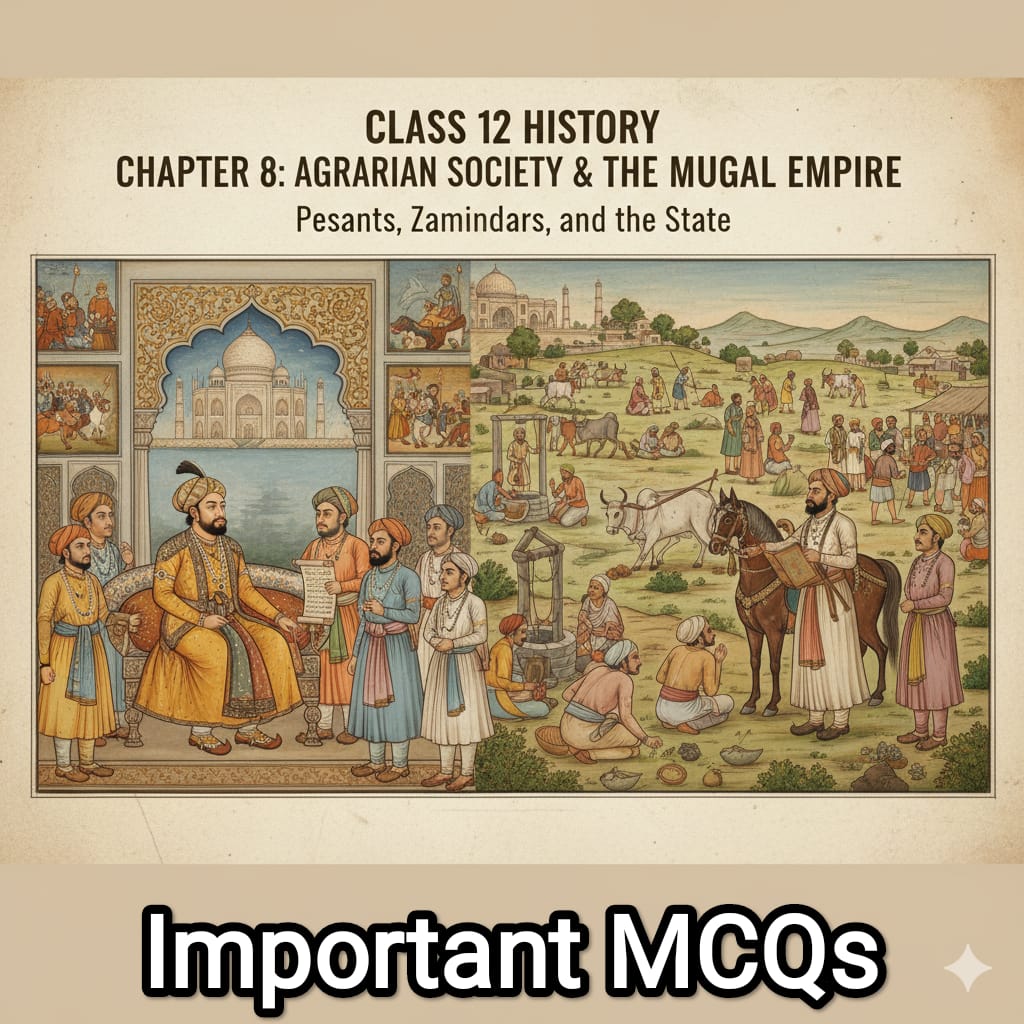 MCQs Chapter 8, Class 12 History, Peasants, Zamindars and the state