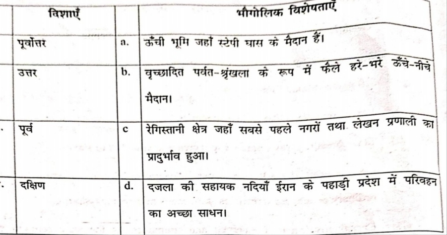 Q13. मेसोपोटामिया की भौगोलिक विविधता के सन्दर्भ में उचित मिलान करते हुए सही विकल्प का चय कीजिएl
