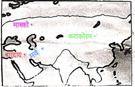 (क) बगदाद (1) (ख) मॉस्को (1) (ग) मर्व अथवा कराकोरम (1)