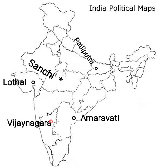 बी: महत्वपूर्ण बौद्ध स्थल (संकेत: मध्य प्रदेश में स्थित स्तूप)।