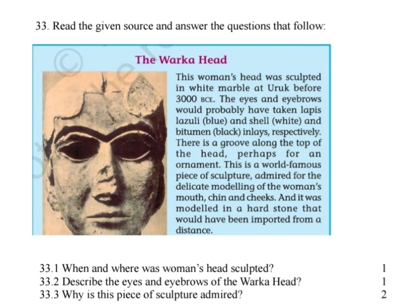 33.2 Eyes/eyebrows – inlaid with lapis lazuli, shell, and bitumen.