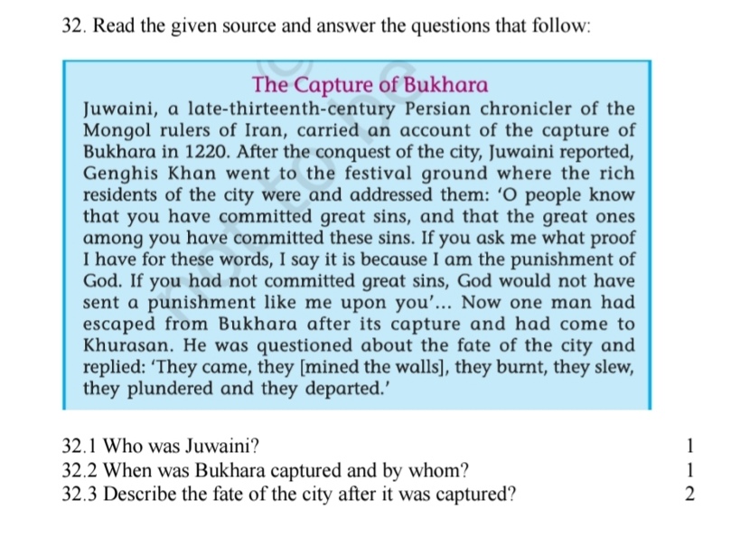 32.2 Bukhara was captured in 1220 by Genghis Khan.