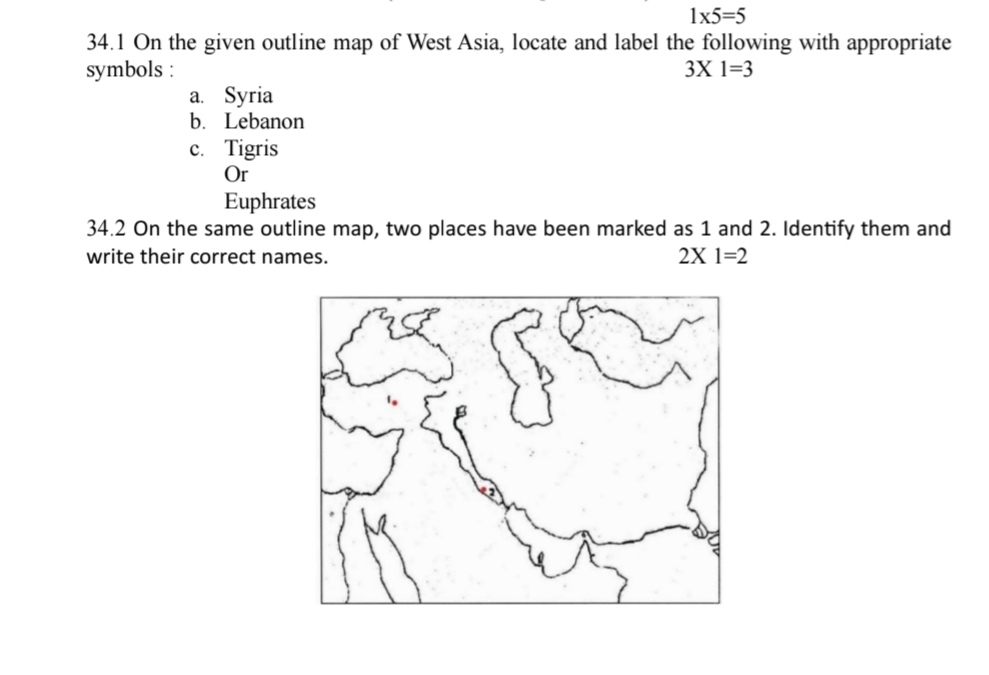 34.2 Identify places marked 1 & 2 → (Teacher usually provides map; correct names would be written after identification.)